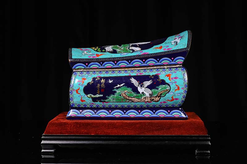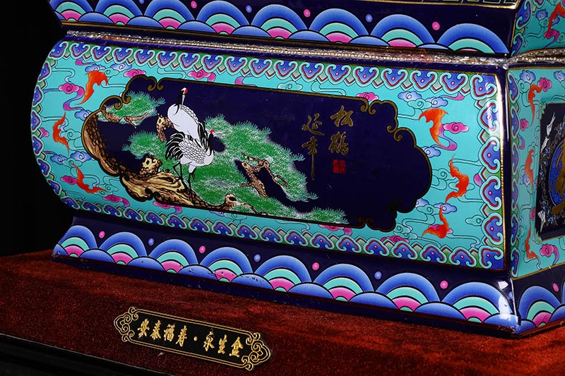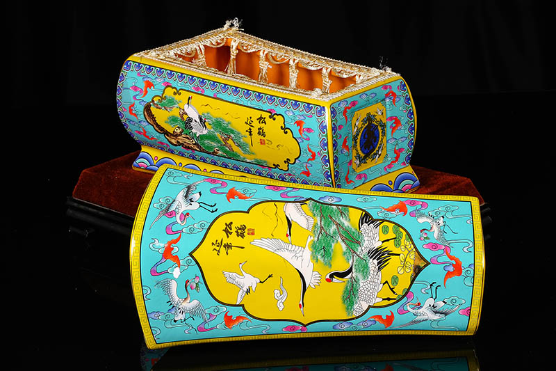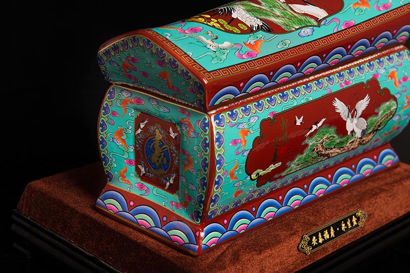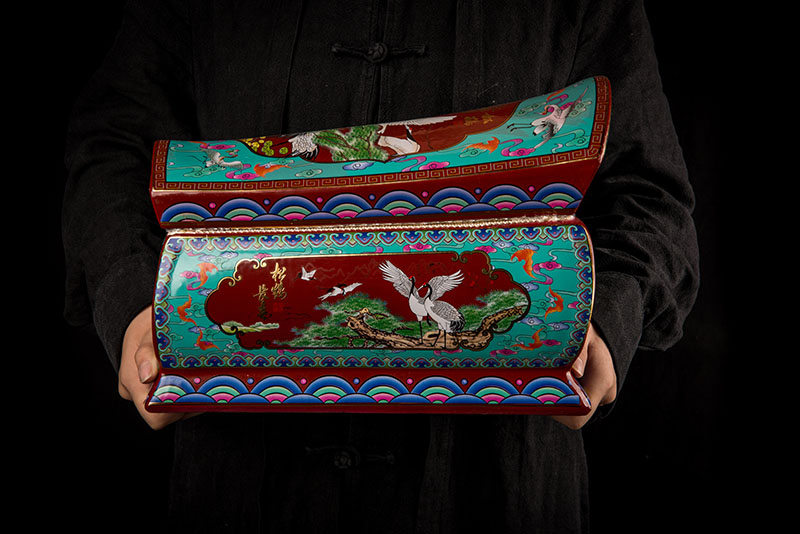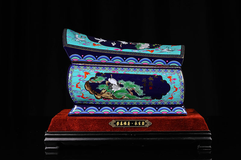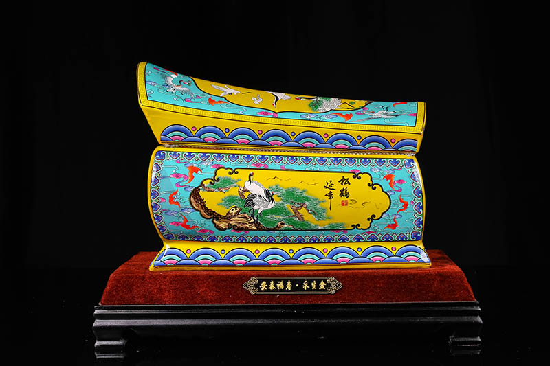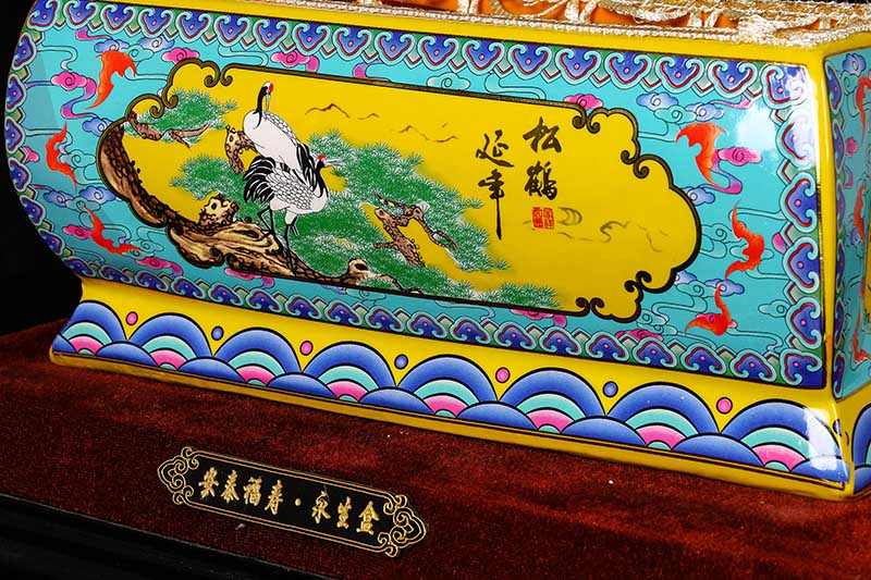 這一款產品采用的是景德鎮(zhèn)獨特工藝粉彩工藝,色彩鮮明,呈色自然。原料用的是 “高嶺土”一種特別土礦資源,“高嶺土”又有高齡之意,與我們產品【仙鶴年年】相得益彰,本款產品運用了仙鶴、松樹、松鶴延年則寓延年益壽或為志節(jié)清高之意。  尺寸:345x200x240mm
