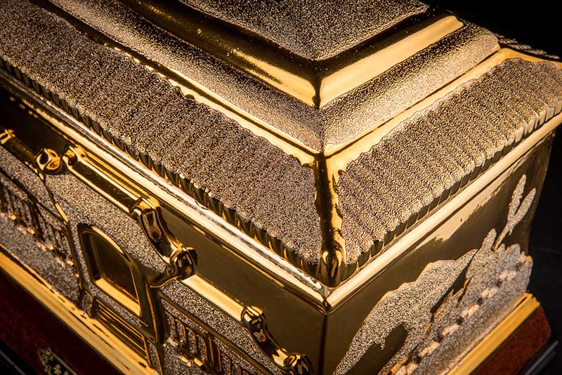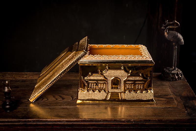 這款【磨砂金金寶盒】整體質(zhì)感出眾,看上去就是富麗堂皇,大氣,同樣是1300高溫煅燒,既有磨砂金的質(zhì)感,又有陶瓷那種光滑如肌的觸感,檔次,品質(zhì)自然而然就能很好的凸顯。這款【磨砂金金寶盒】正面是故宮造型,背面是山,寓意富麗堂皇,子孫后代今后事事有靠山,事事如意。尺寸:360x250x270mm(大)300x230x210mm(?。?/p>
