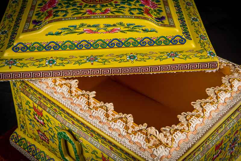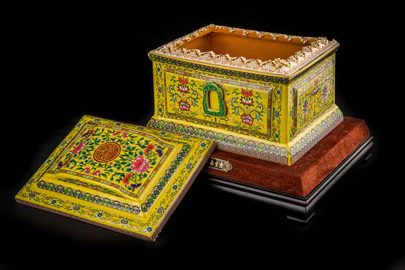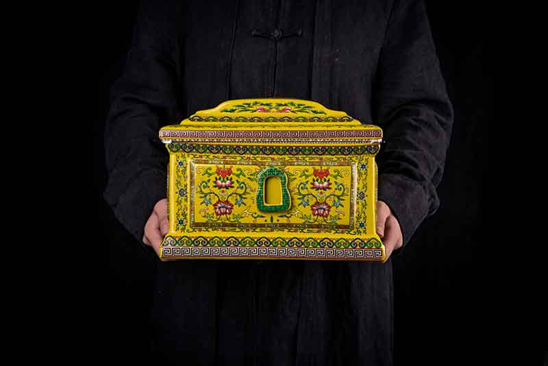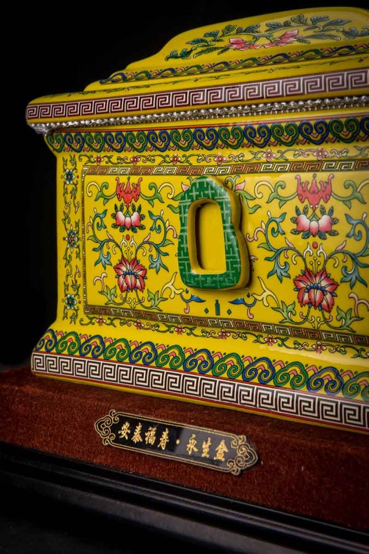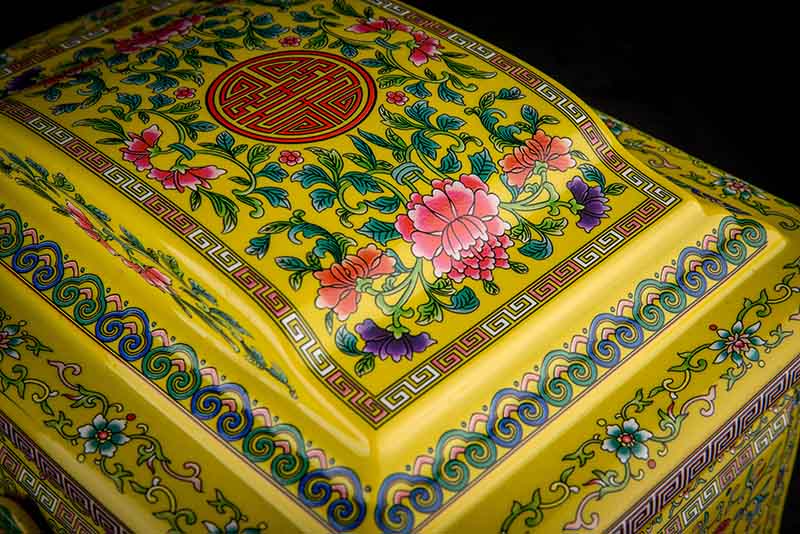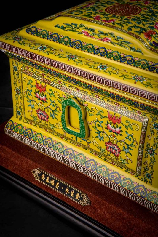 這款【吉祥如意】系列產(chǎn)品,目前有幾種顏色釉系列,黃、藍(lán)、紅、以及黑。這款產(chǎn)品運(yùn)用中國古代傳統(tǒng)的吉祥紋飾—“纏枝蓮”?!袄p枝蓮”常運(yùn)用在陶瓷作為點(diǎn)綴,因其結(jié)構(gòu)連綿不斷,故又具“生生不息”之意,同樣保后代代代繁榮。尺寸:300x230x210mm