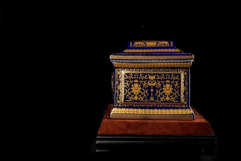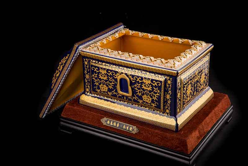 這款【吉祥如意】系列產(chǎn)品,目前有幾種顏色釉系列,黃、藍(lán)、紅、以及黑。這款產(chǎn)品運(yùn)用中國(guó)古代傳統(tǒng)的吉祥紋飾—“纏枝蓮”?!袄p枝蓮”常運(yùn)用在陶瓷作為點(diǎn)綴,因其結(jié)構(gòu)連綿不斷,故又具“生生不息”之意,同樣保后代代代繁榮。尺寸:300x230x210mm